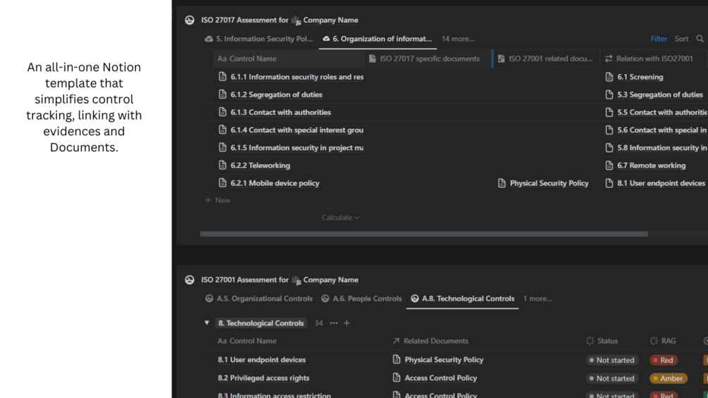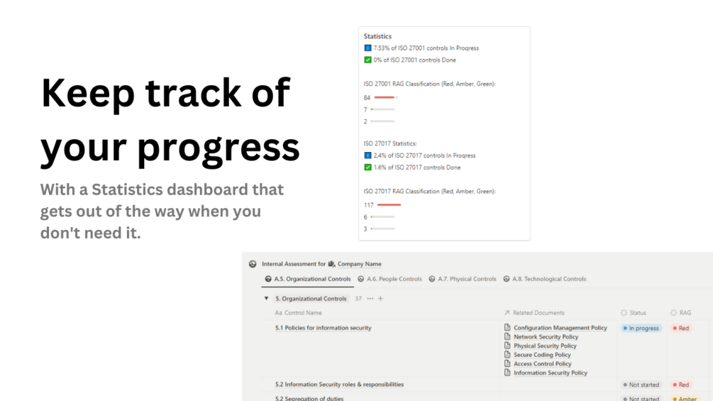 to reflect the initial state of your organization and track efforts towards achieving each control of the norms, including the entire control set for ISO27001:2022 and ISO27017, with objectives and guidance on how to assess it. -