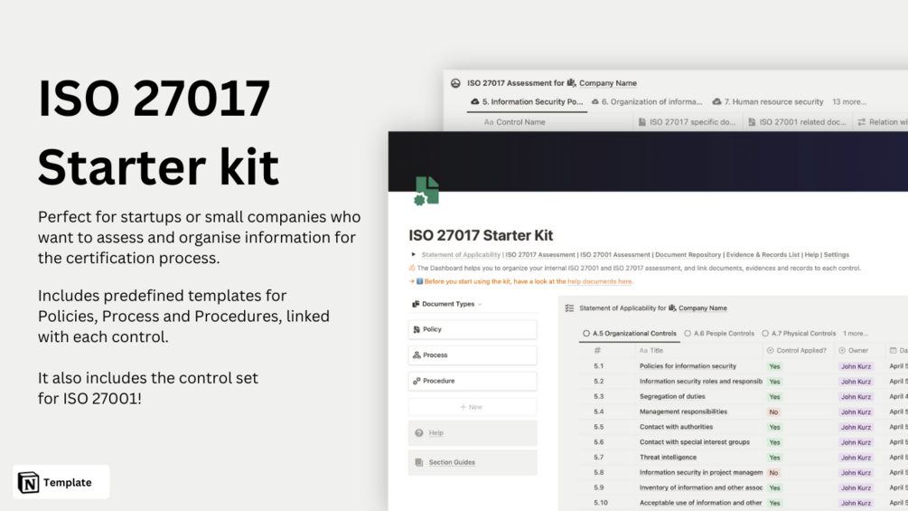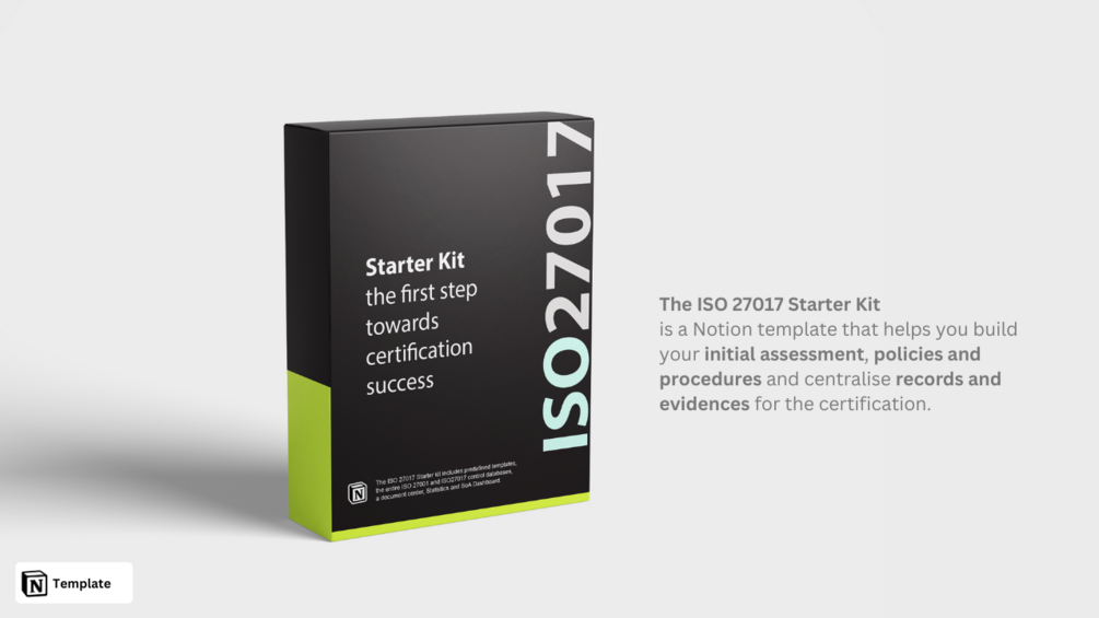 The ISO 27017 starter kit is an all-in-one no-nonsense template that lets you manage the first steps that organizations take while embarking into the certification process.